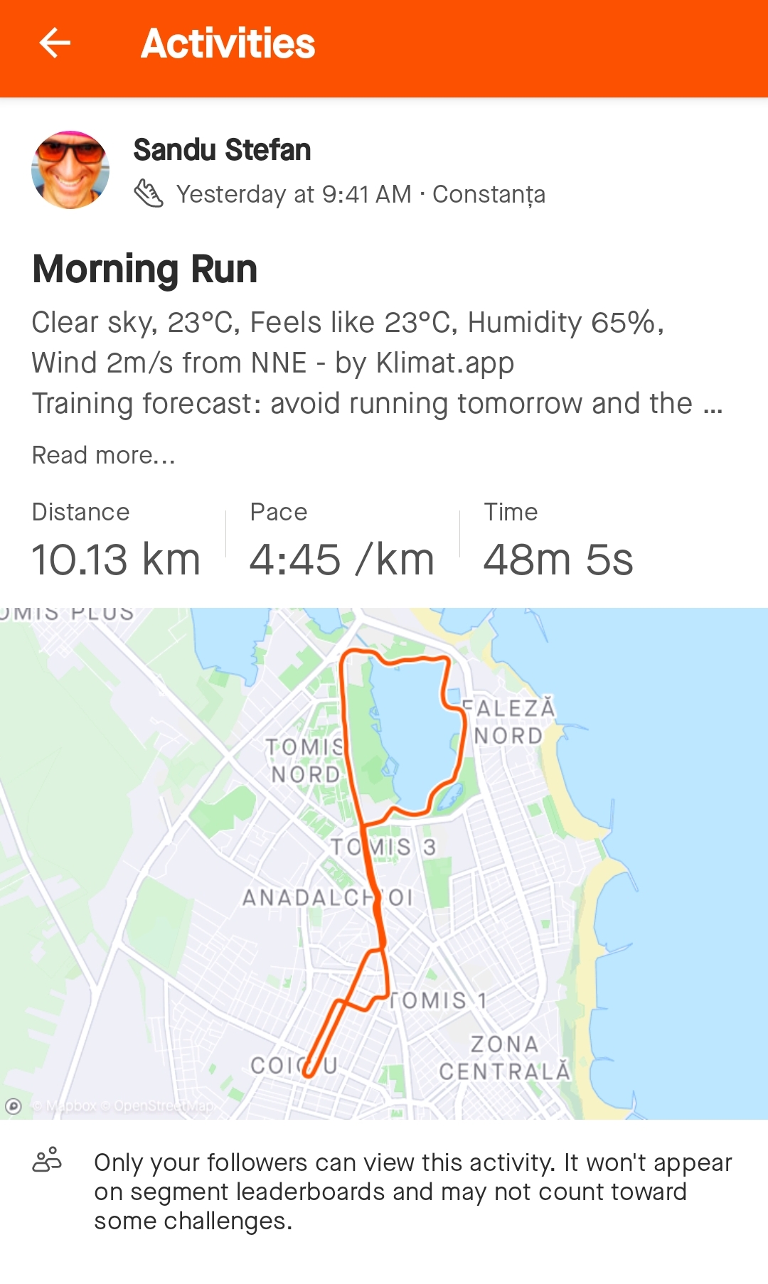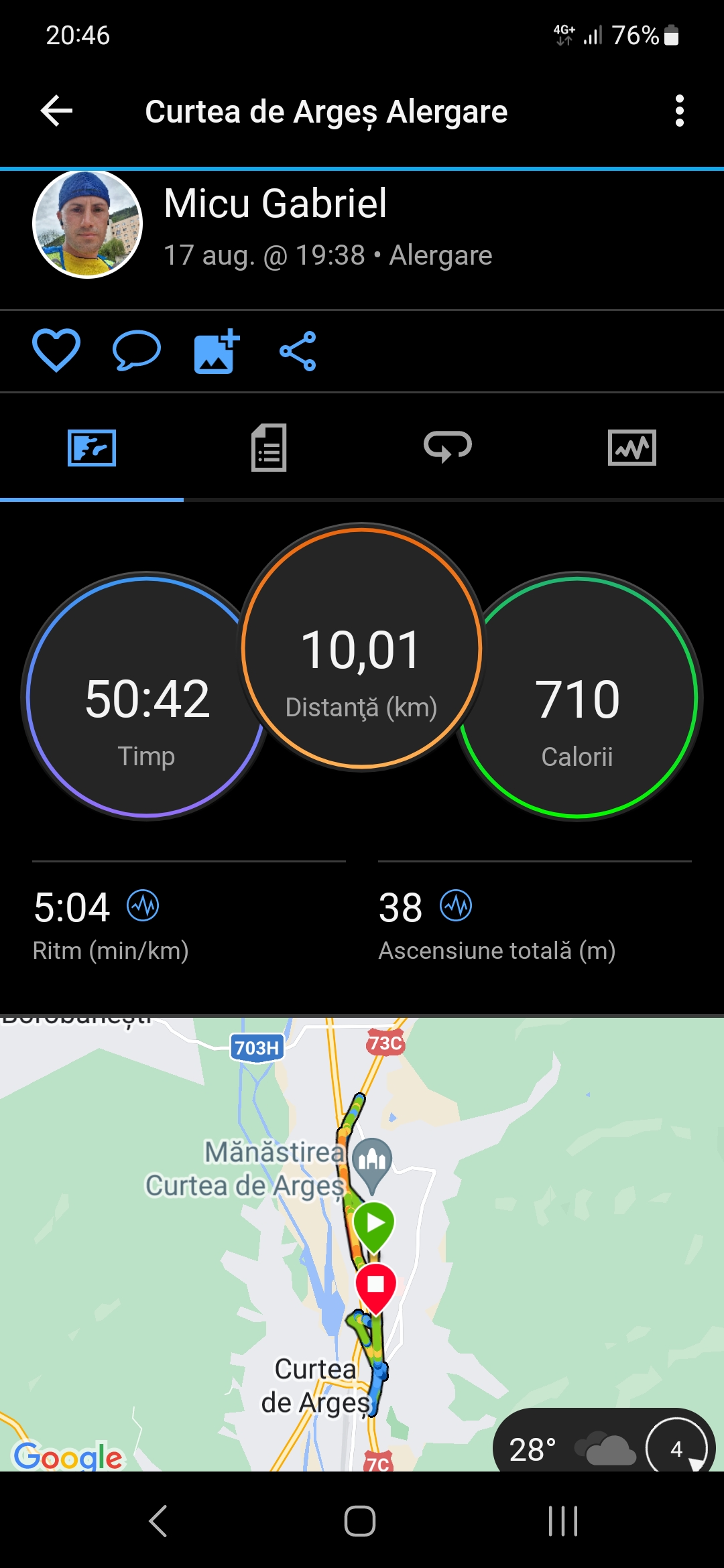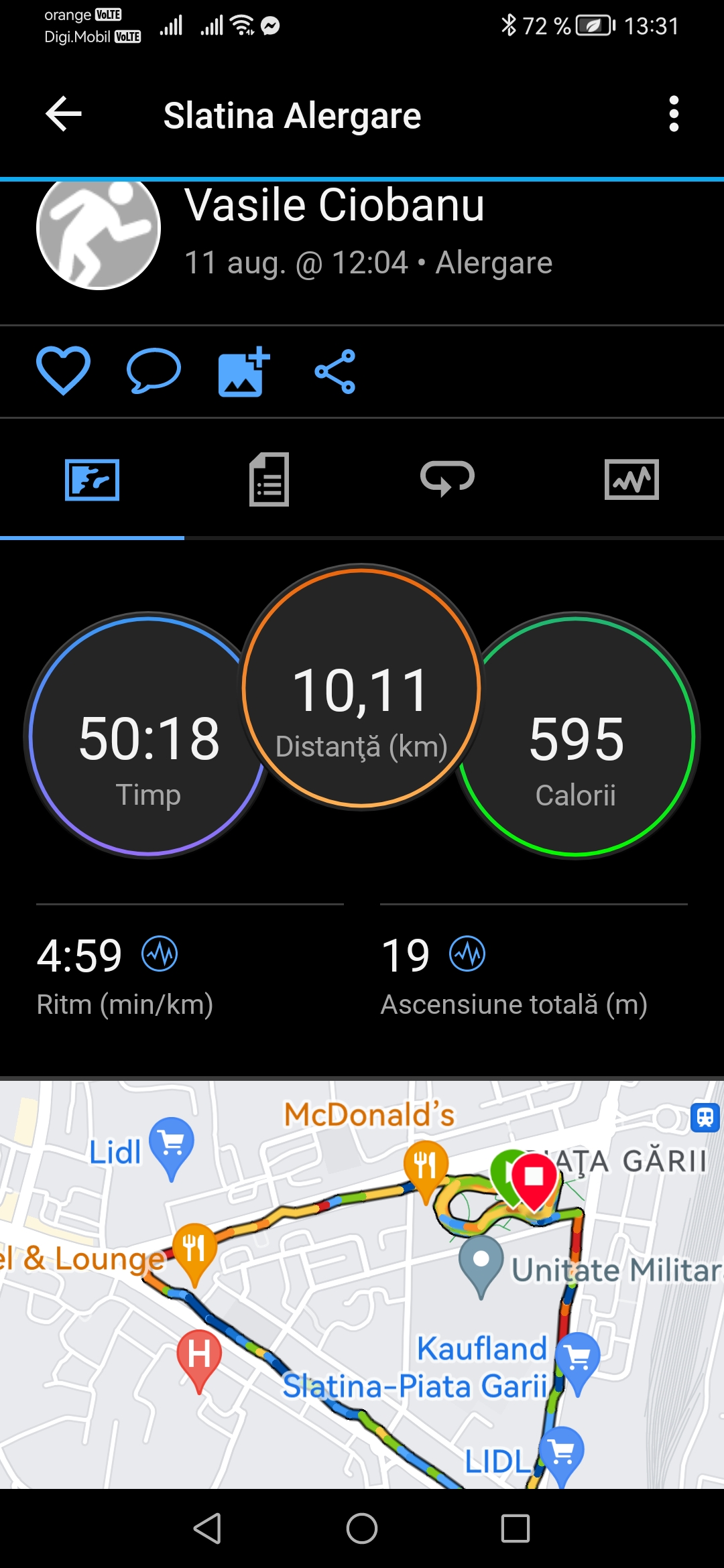 Încarcă o poză din aplicația pe care o folosești pentru a îți monitoriza activitatea sportivă