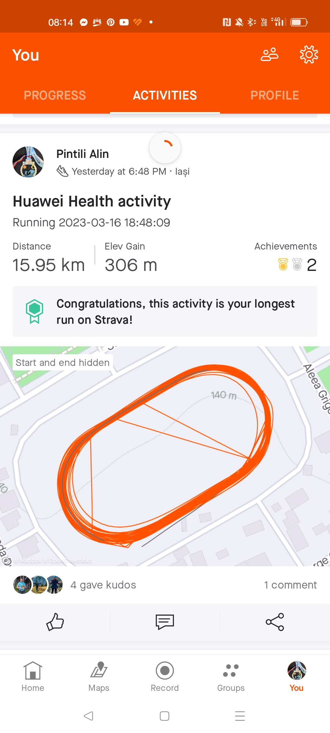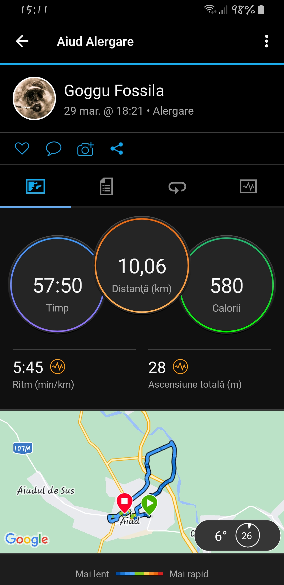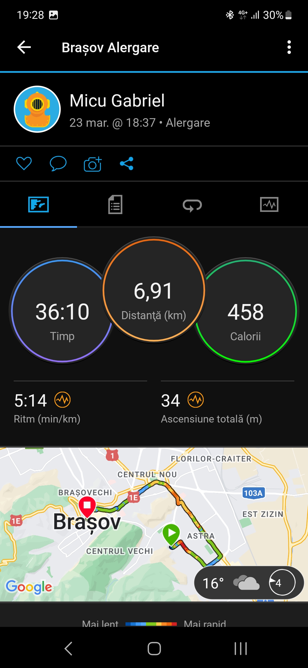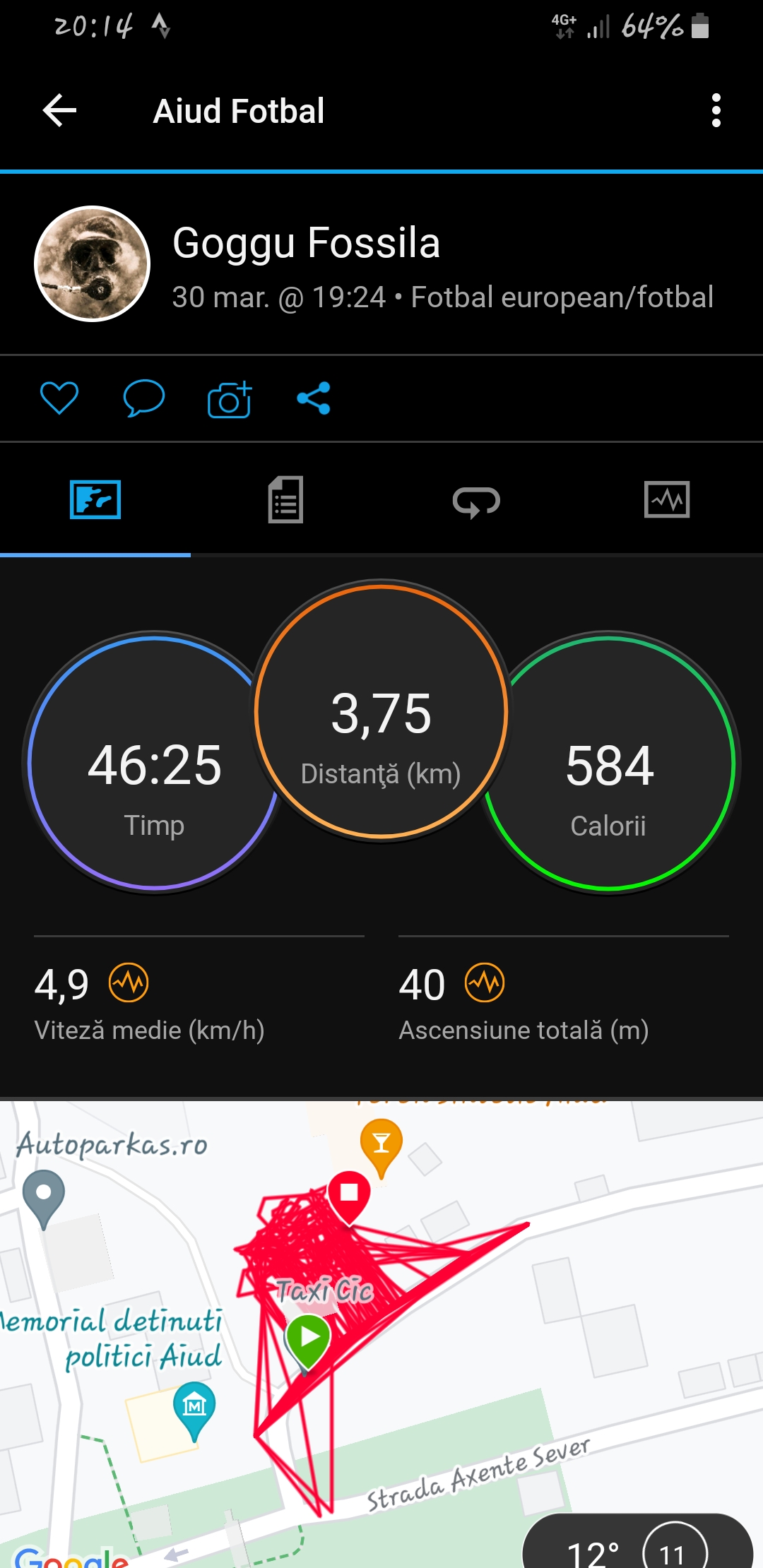 Încarcă o poză din aplicația pe care o folosești pentru a îți monitoriza activitatea sportivă
