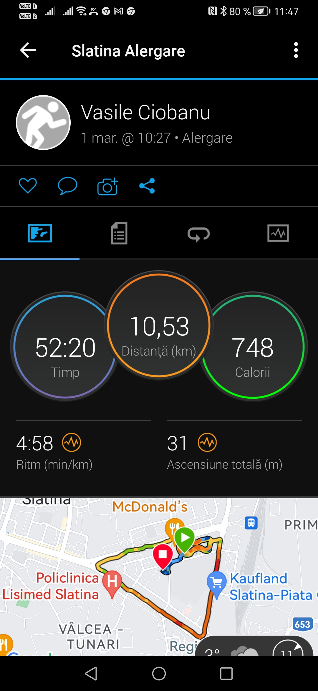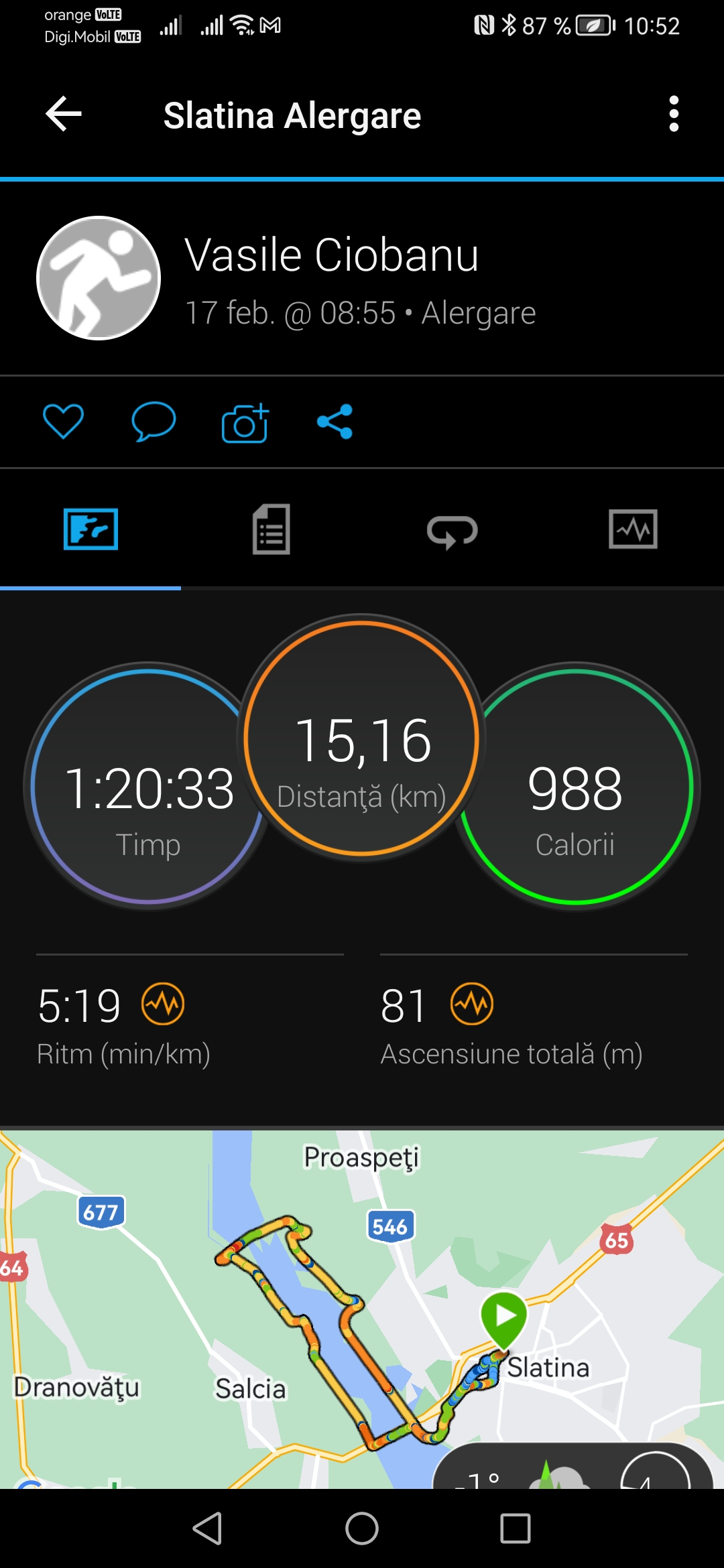 Încarcă o poză din aplicația pe care o folosești pentru a îți monitoriza activitatea sportivă