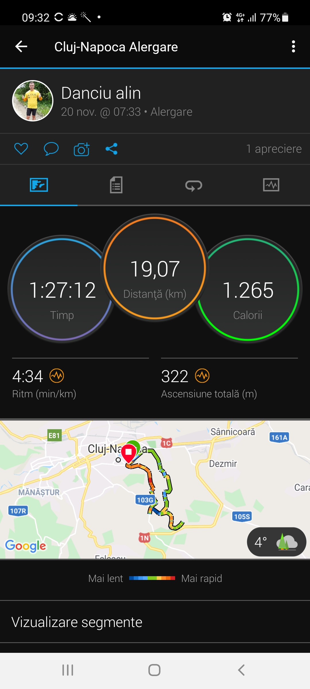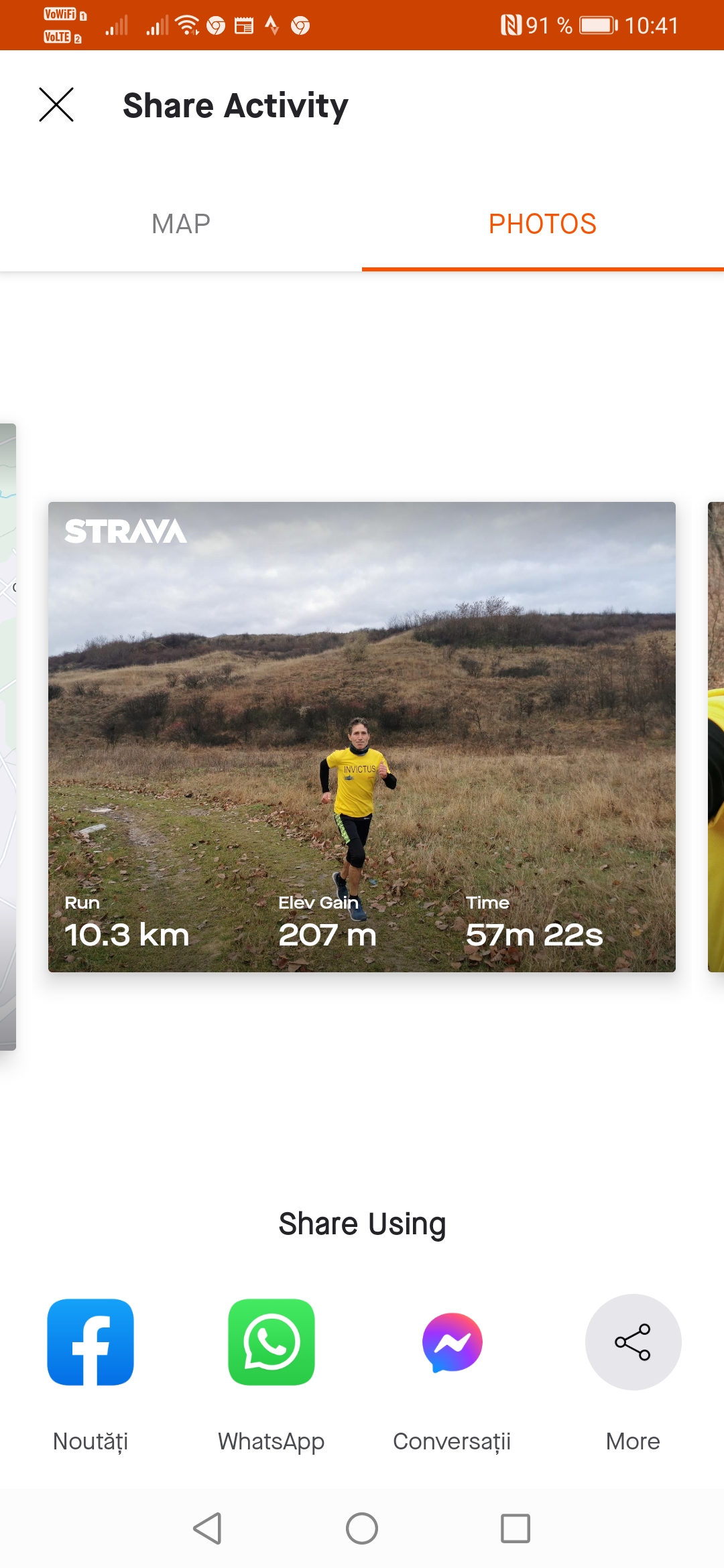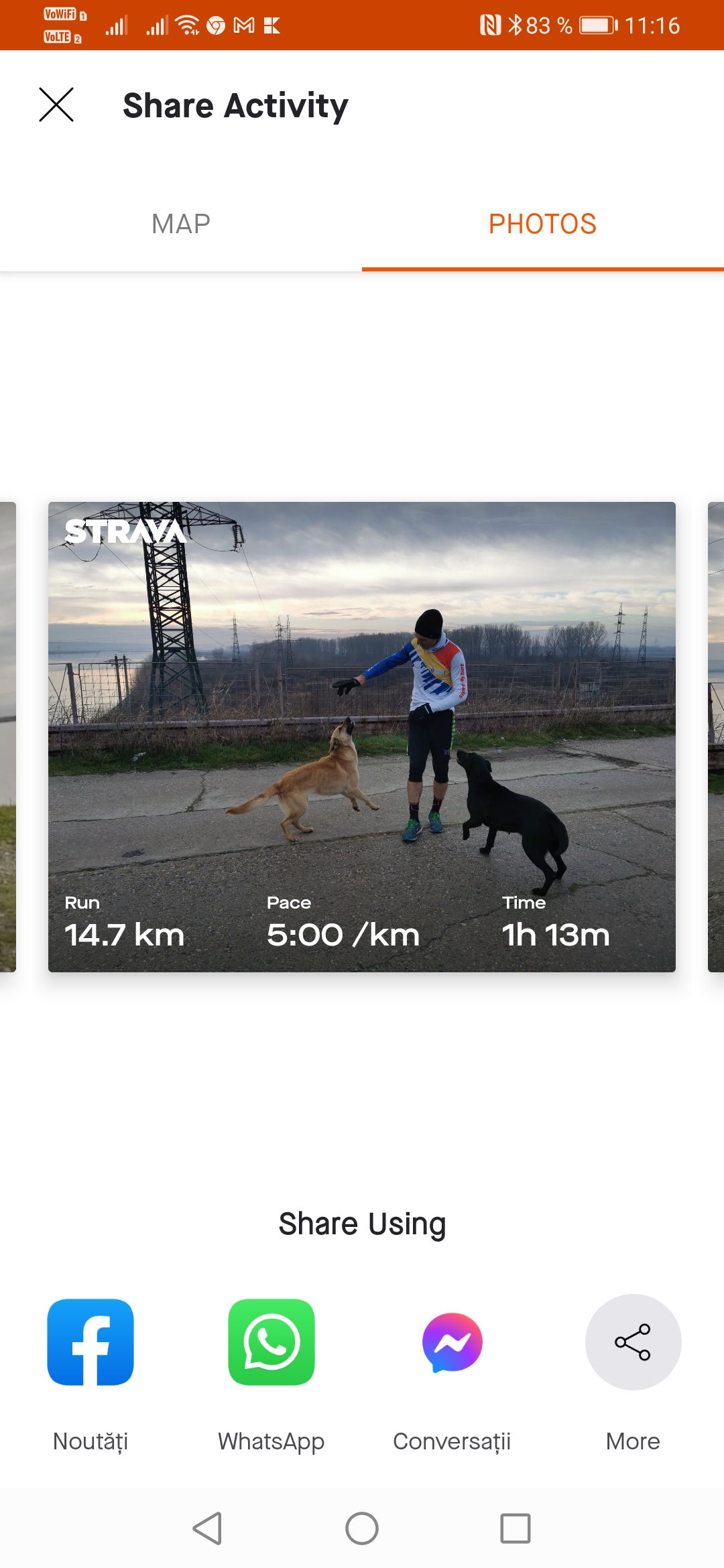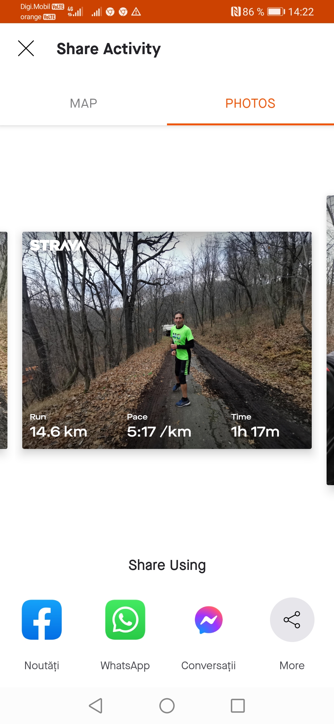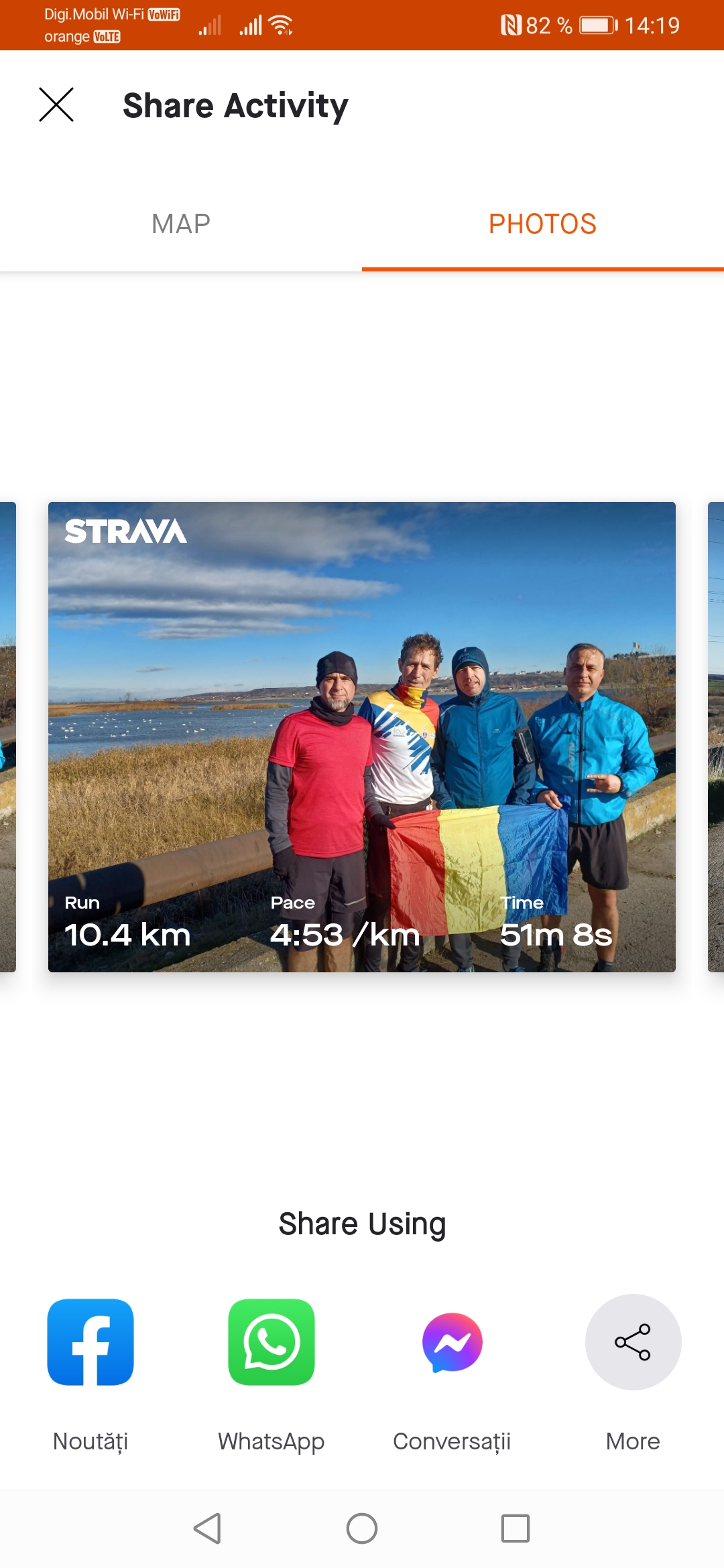 Încarcă o poză din aplicația pe care o folosești pentru a îți monitoriza activitatea sportivă