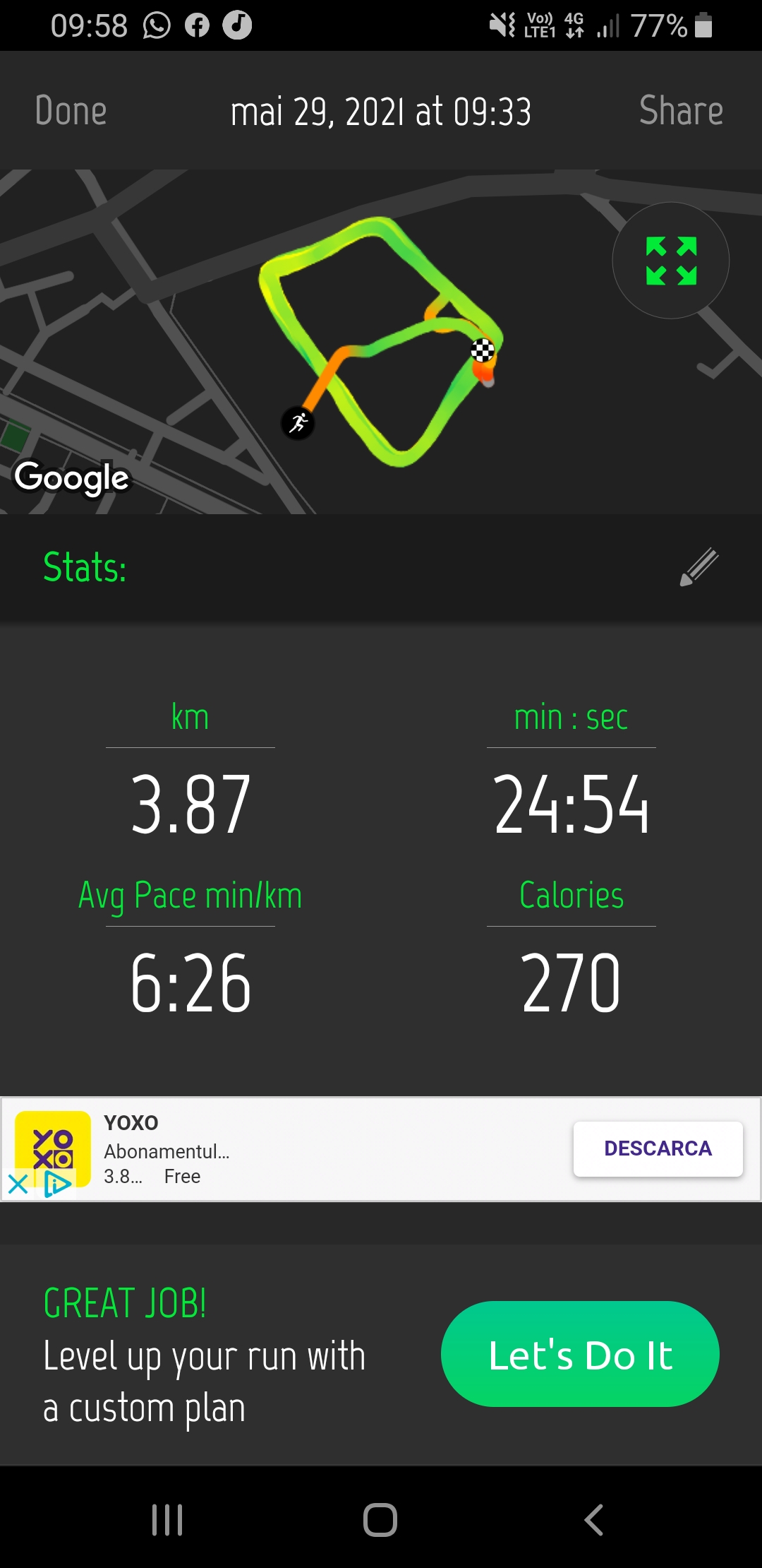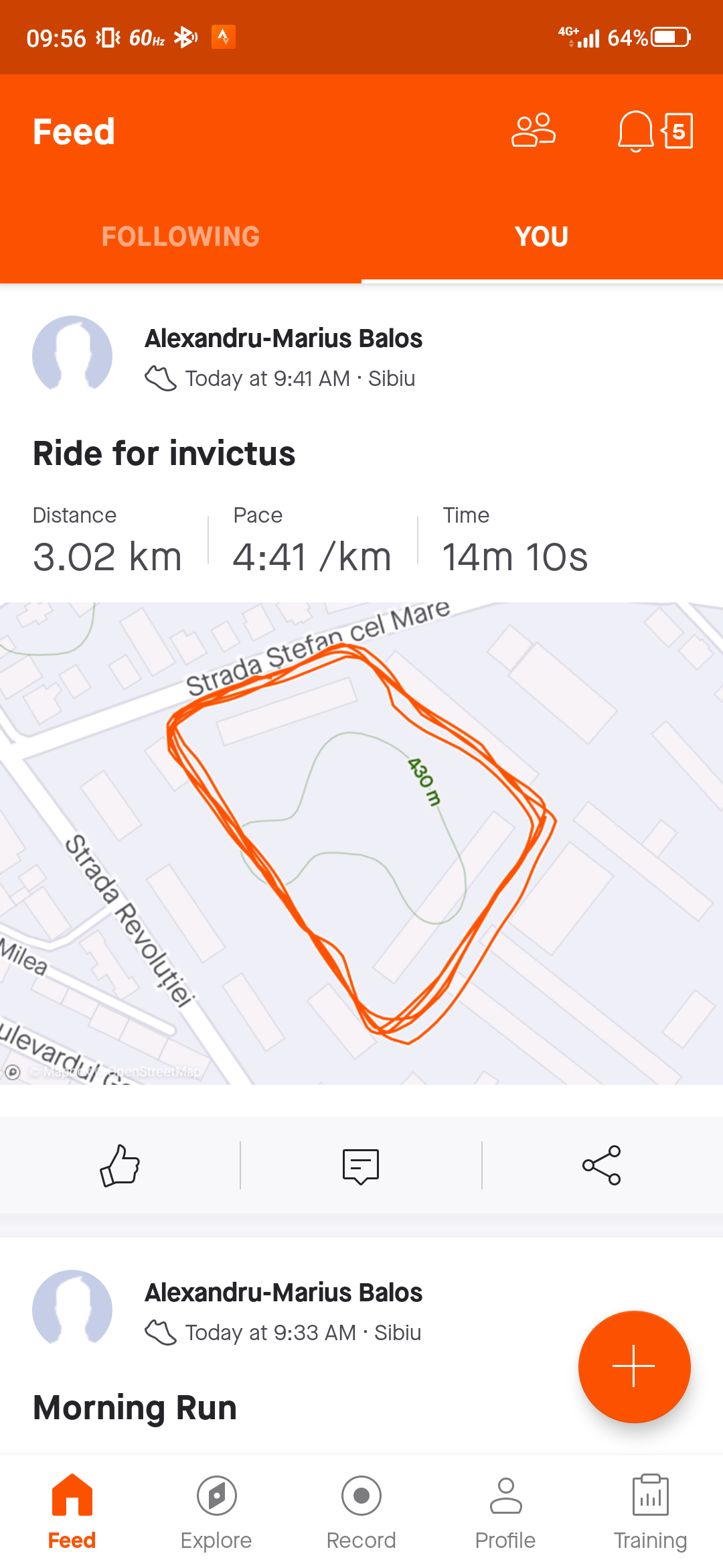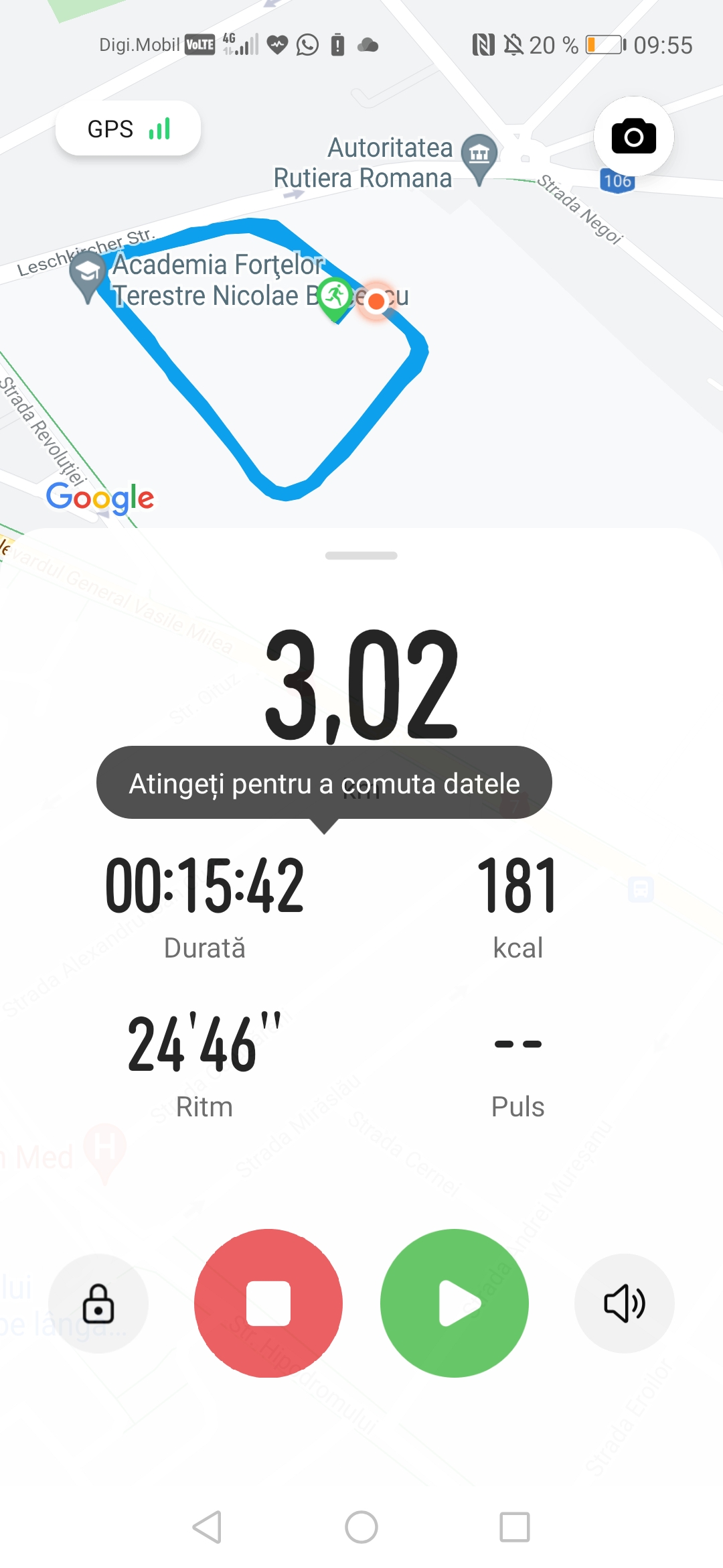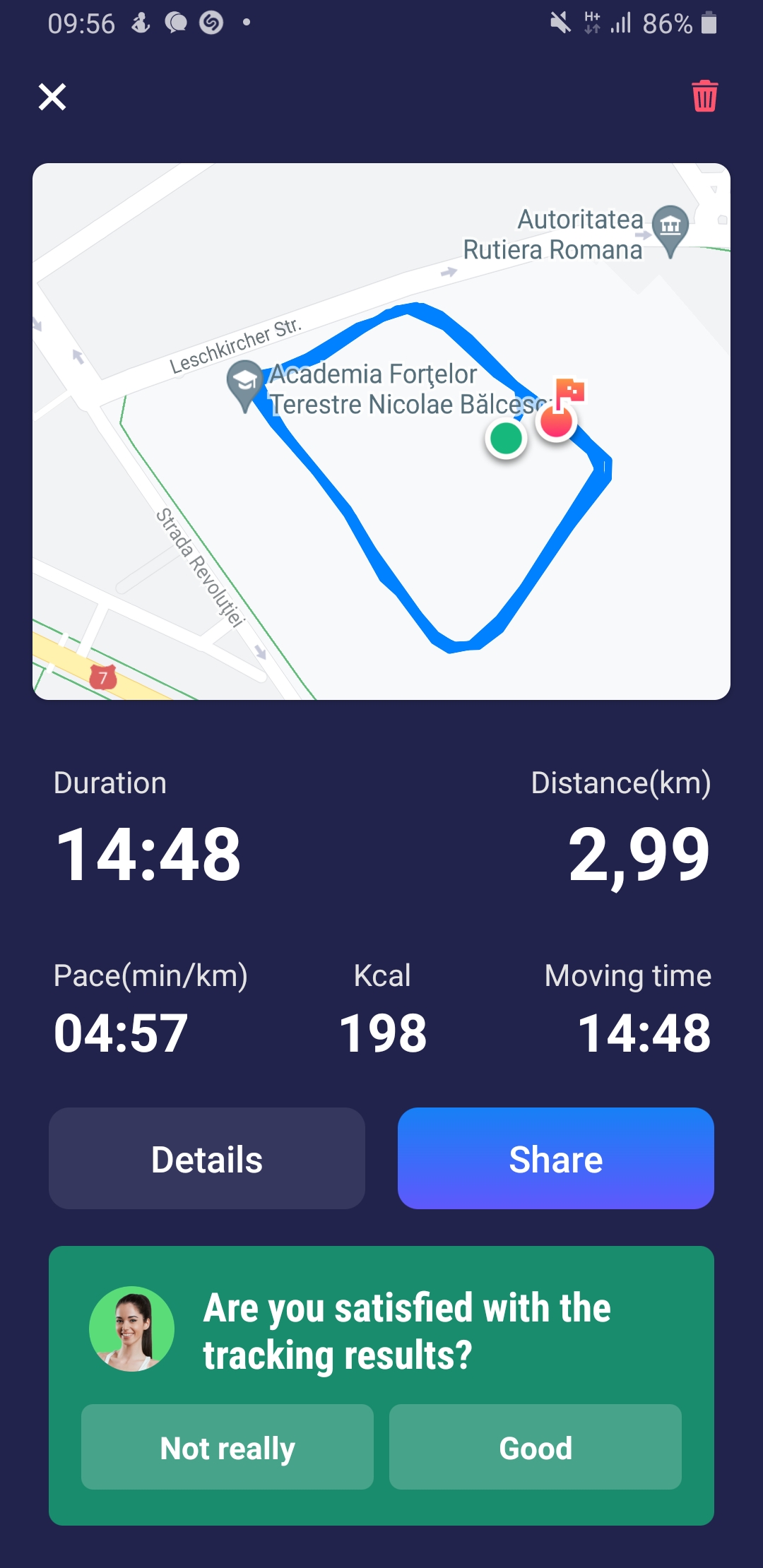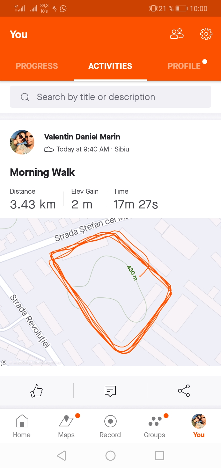 Încarcă o poză din aplicația pe care o folosești pentru a îți monitoriza activitatea sportivă