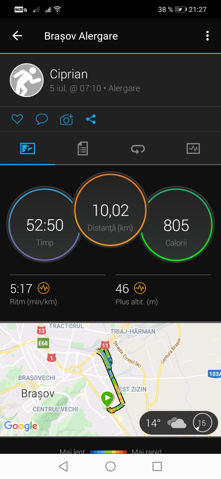 Încarcă o poză din aplicația pe care o folosești pentru a îți monitoriza activitatea sportivă