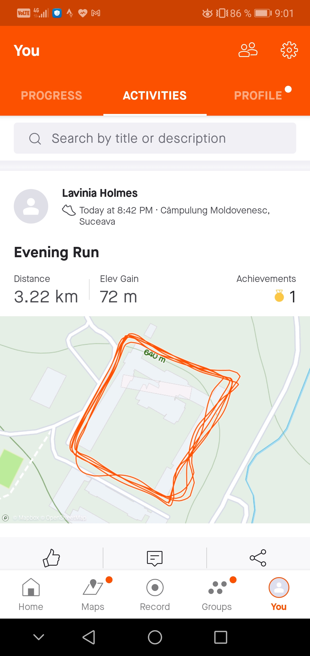 Încarcă o poză din aplicația pe care o folosești pentru a îți monitoriza activitatea sportivă