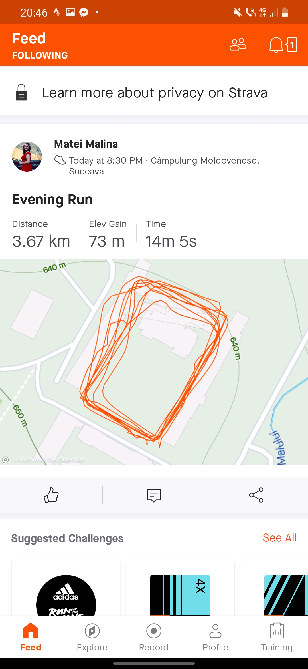 Încarcă o poză din aplicația pe care o folosești pentru a îți monitoriza activitatea sportivă
